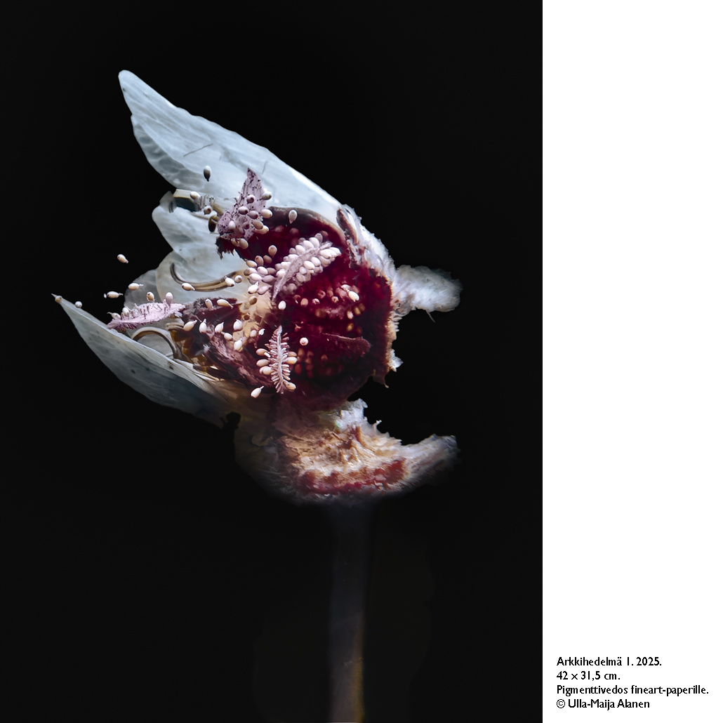 Kuvat siemeniään ampuvista lumpeista ovat kasvitieteellinen sensaatio*. Lumpeen biologian tietämyksessä on aukkoja arvovaltaisimmissakin kasvitieteellisissä julkaisuissa. Ennen valokuvieni evidenssiä ei ole tiedetty, että lumpeen hedelmä on räjähtävä kota. Koska vain kukkivat kasvit tuottavat hedelmiä, ja koska lumpeen sukupuu on maailmanhistorian vanhimpia kukkijoita (n. 120 miljoonaa vuotta), nimesin tämän teossarjan Arkkihedelmäksi. Niissä on samanaikaisesti esillä kukan kuolema ja uuden elämän syntymä, kun lumme viimeisillä voimillaan ampuu veteen satoja punaisia siemeniä.